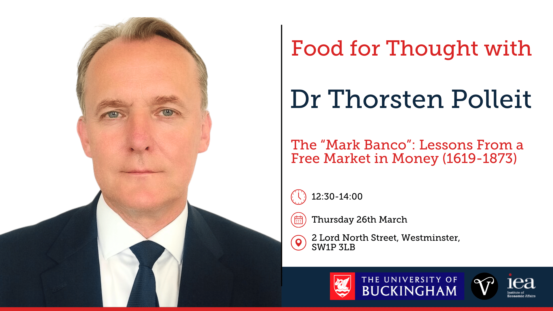 This will be the next instalment in our monthly Food for Thought series, hosted in partnership with the Vinson Centre at the University of Buckingham. The purpose of this series is to foster high-level academic discussion on themes within the classical liberal tradition, touching on economics, philosophy, history, law, and related disciplines. In turn, we hope to form a community of academics, policymakers, professionals, and students united by the exchange of ideas and life-long learning.